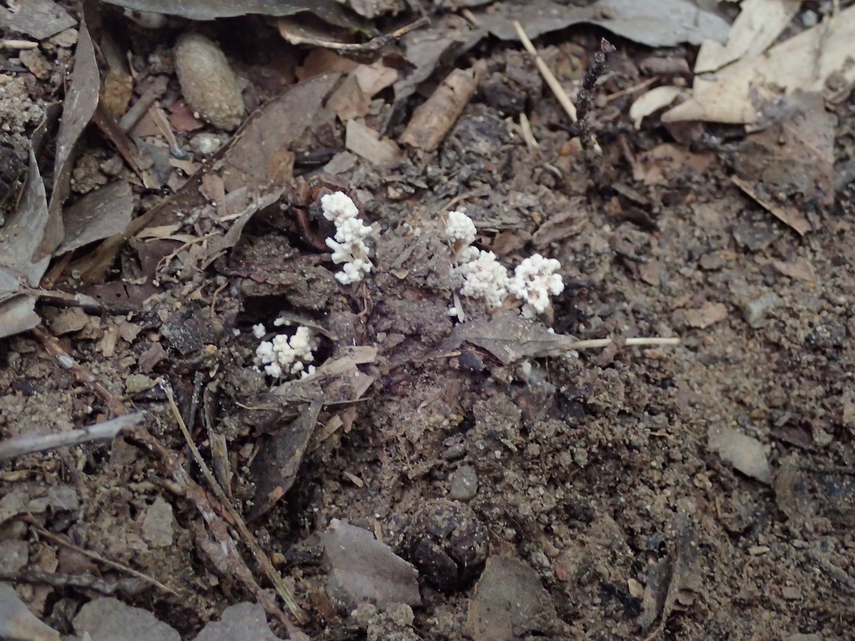 左から、イタチタケ近縁種、ヌメリガサ属の一種、ホウロクタケ、同左