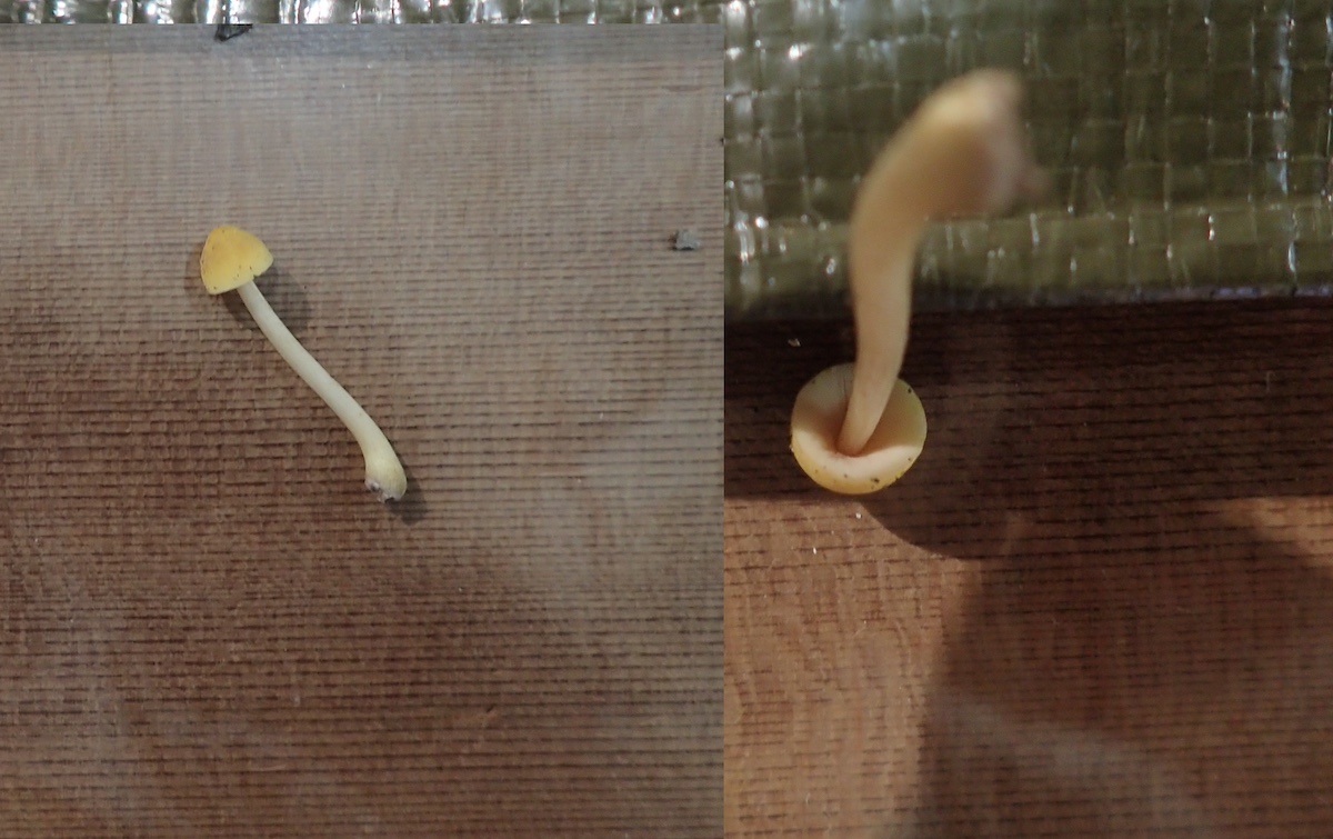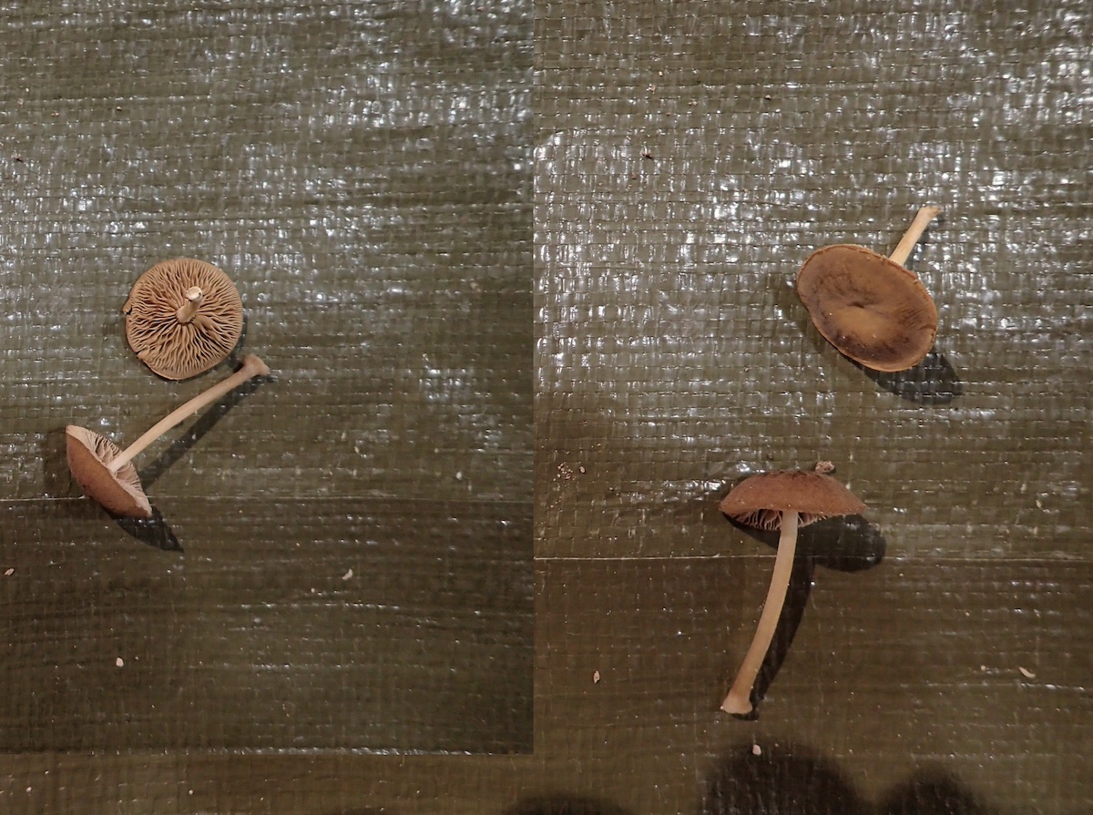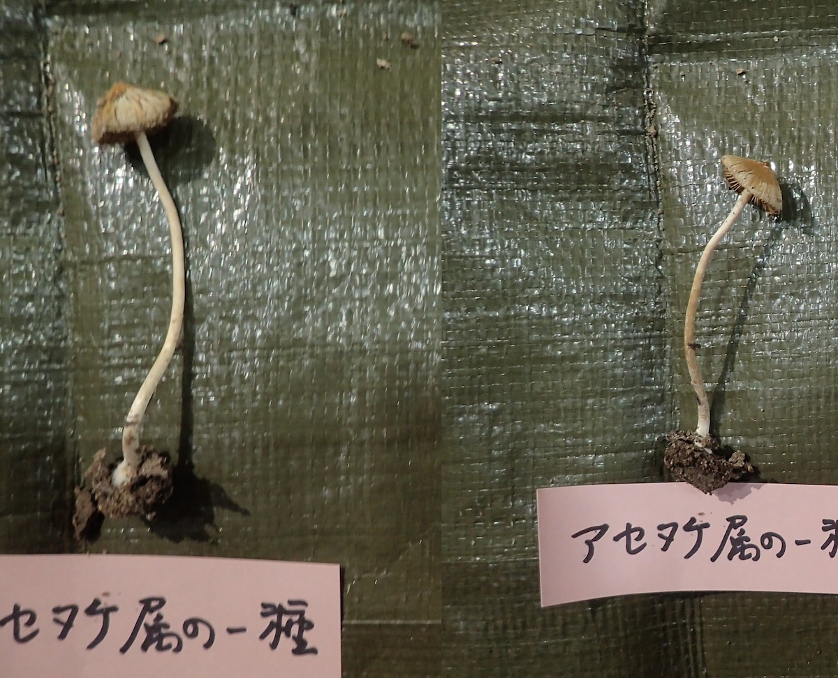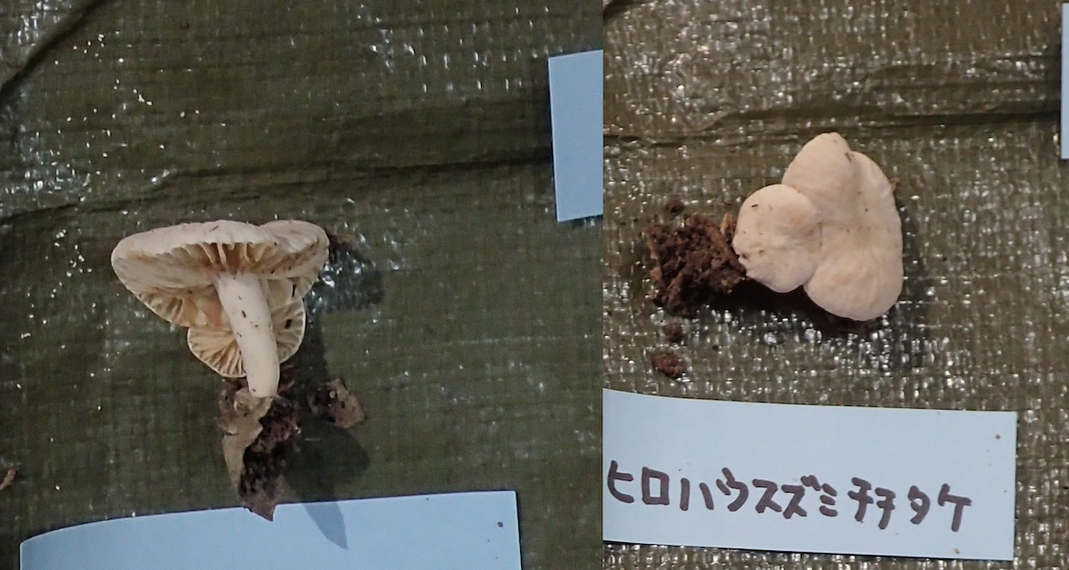 左から、ツクツクボウシタケ、ヒロハウスズミチチタケ