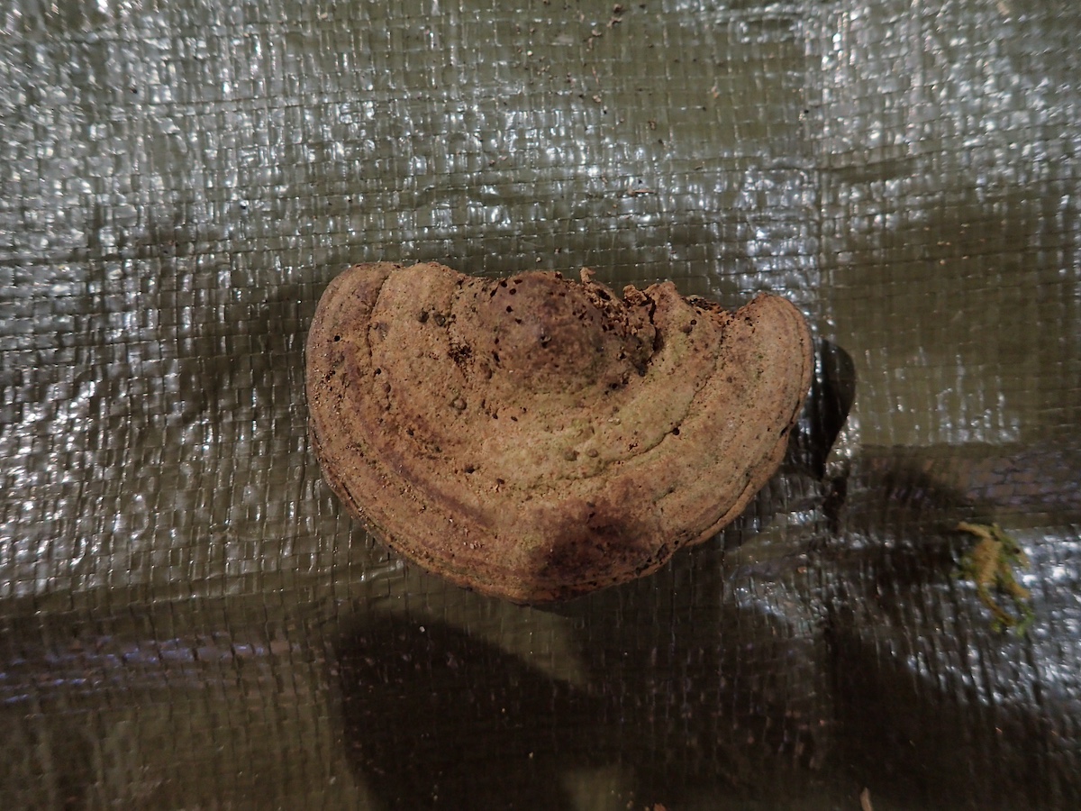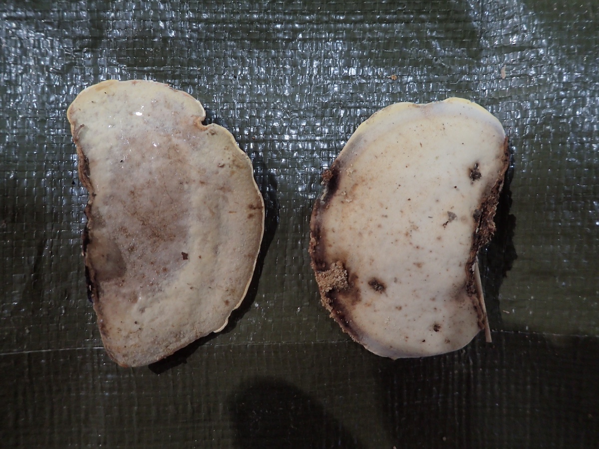 これらのホウロクタケと思われます、左の褐色のは老菌、右の灰色のは若い個体