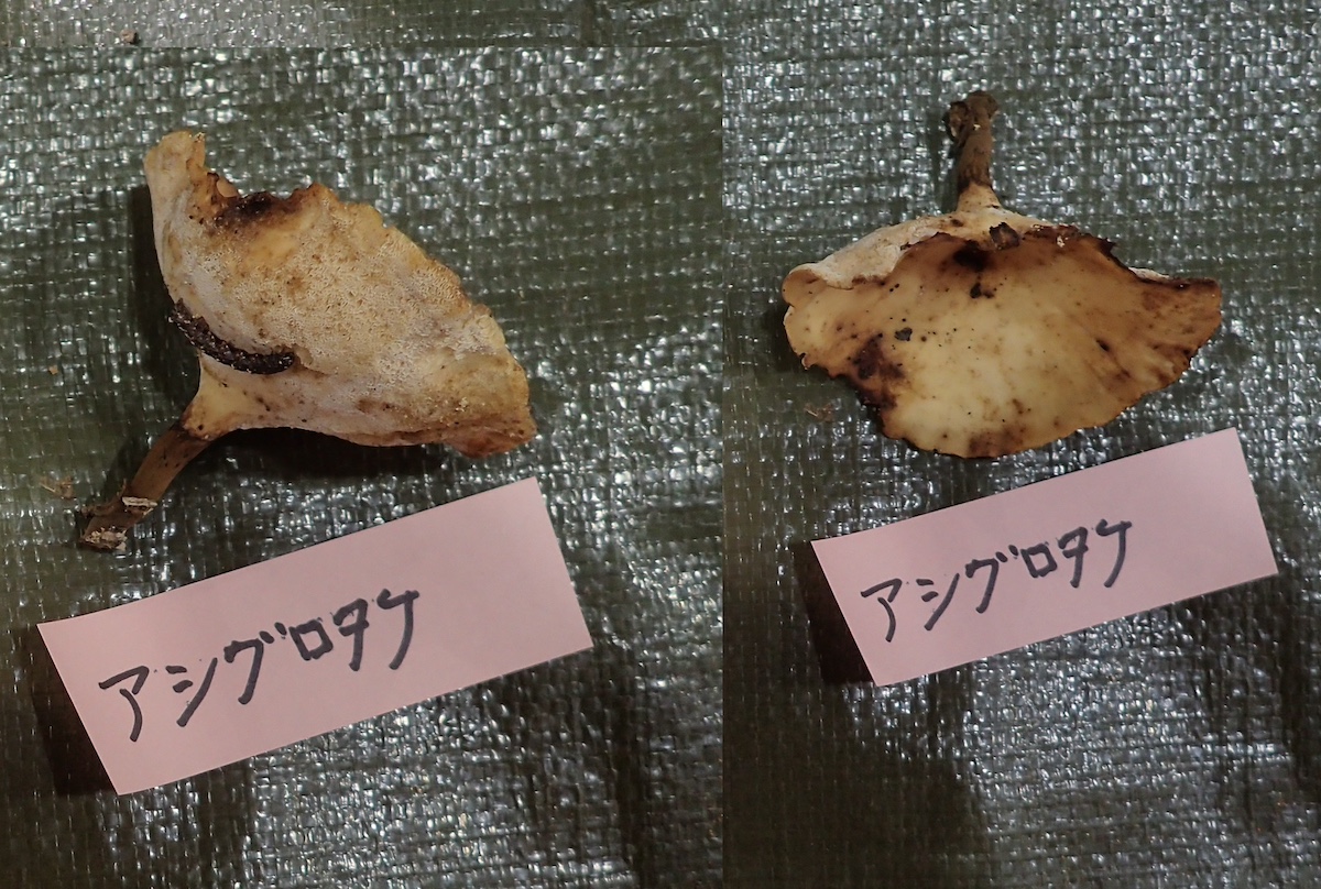 | アシグロタケ | タマチョレイタケ属/オツネンタケモドキ属 | タマチョレイタケ科/タコウキン科 |