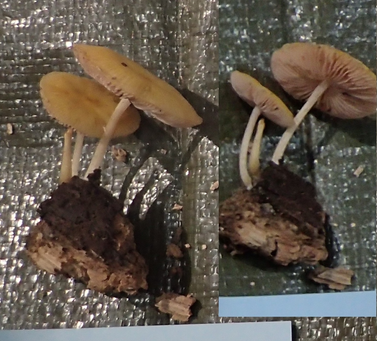左:クリゲノチャヒラタケ、右、ツクツクボウシタケ