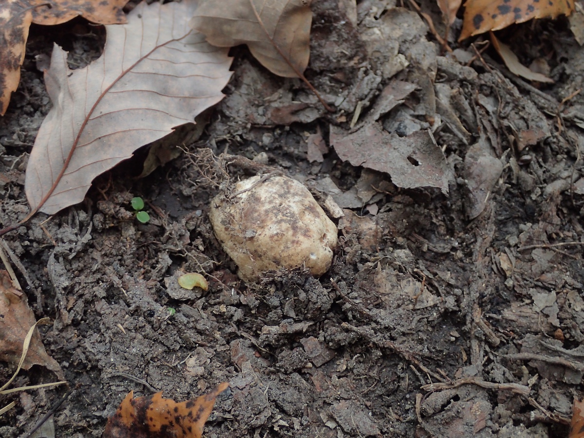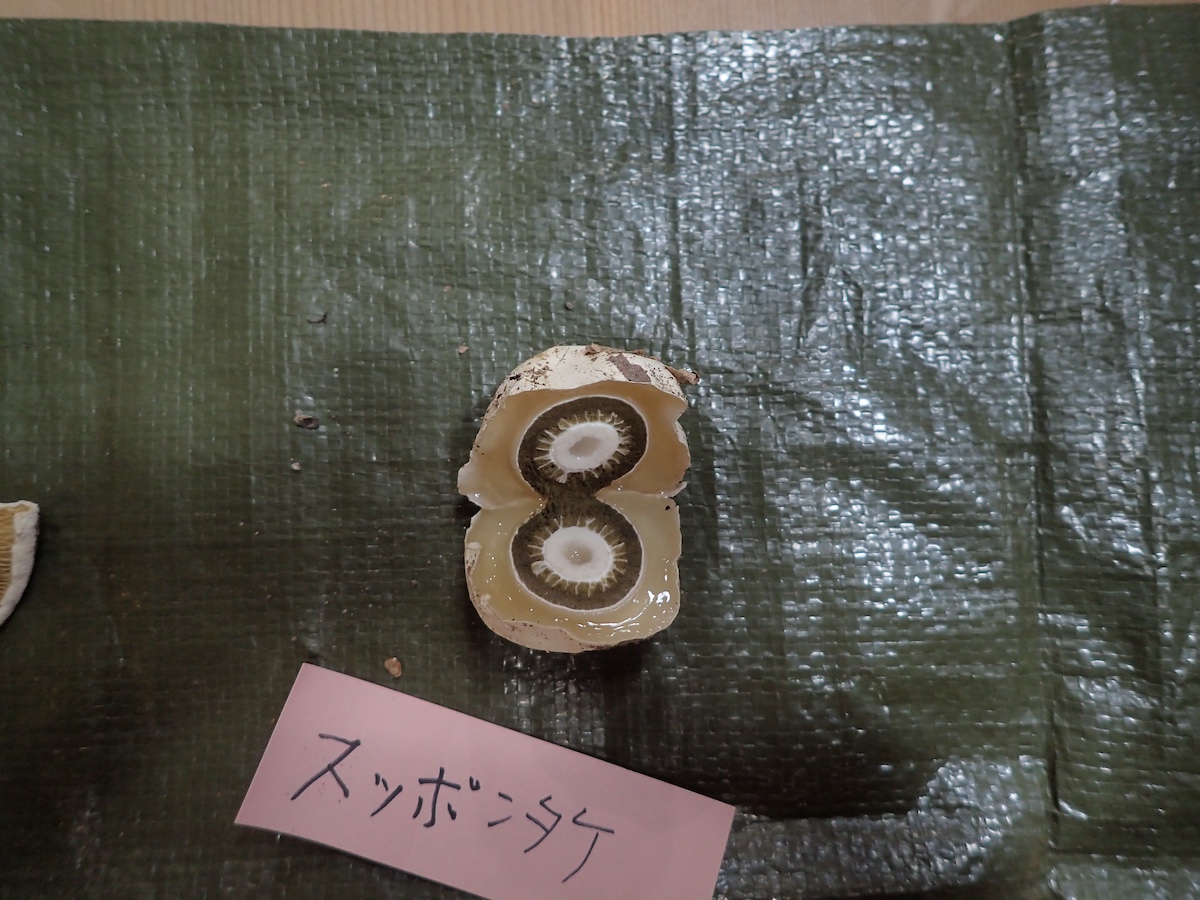 トリュフを探している時に見つけた白い丸いものを切ってみると・・・スッポンタケのタマゴであった!!!