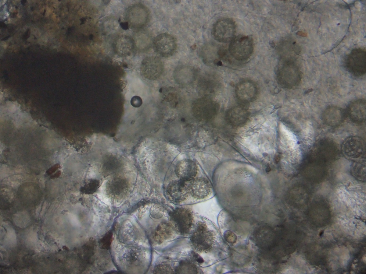 当日持参したコンパクト顕微鏡でも150倍の低倍率でよく見えるので感激!(写真はその接写)