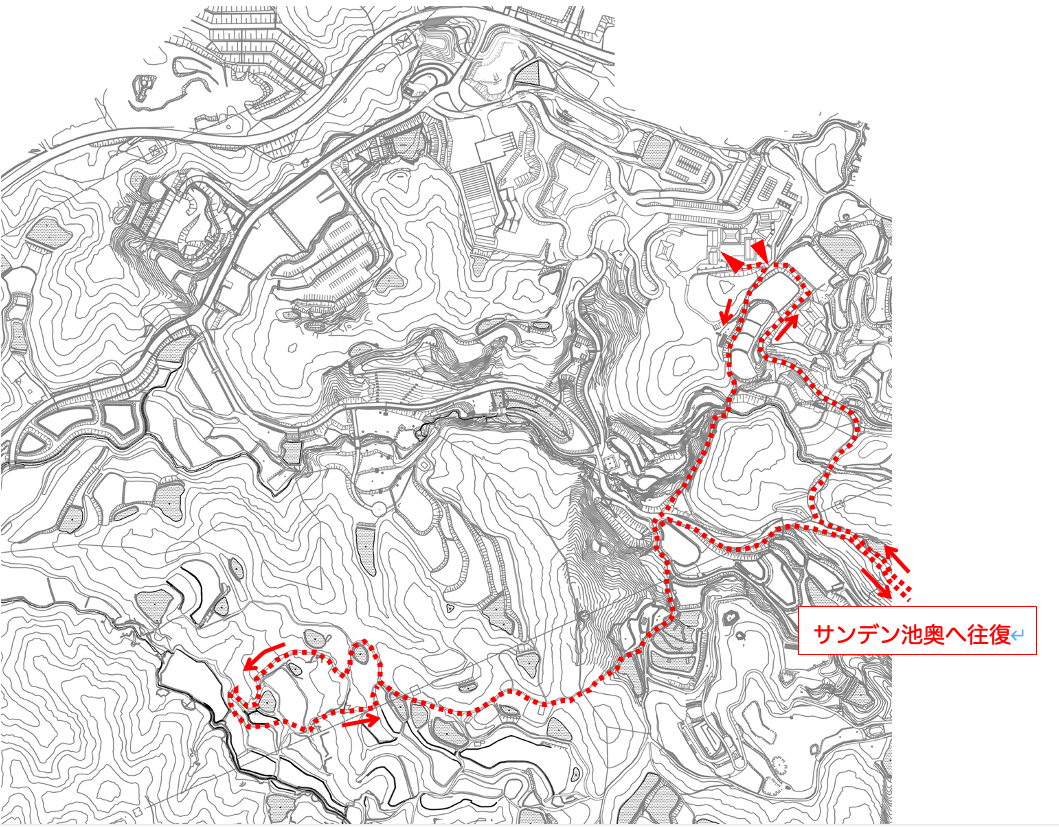 いつもの竹林の谷に降りる別れ道を真っ直ぐにかなり西まで進んでいきます。