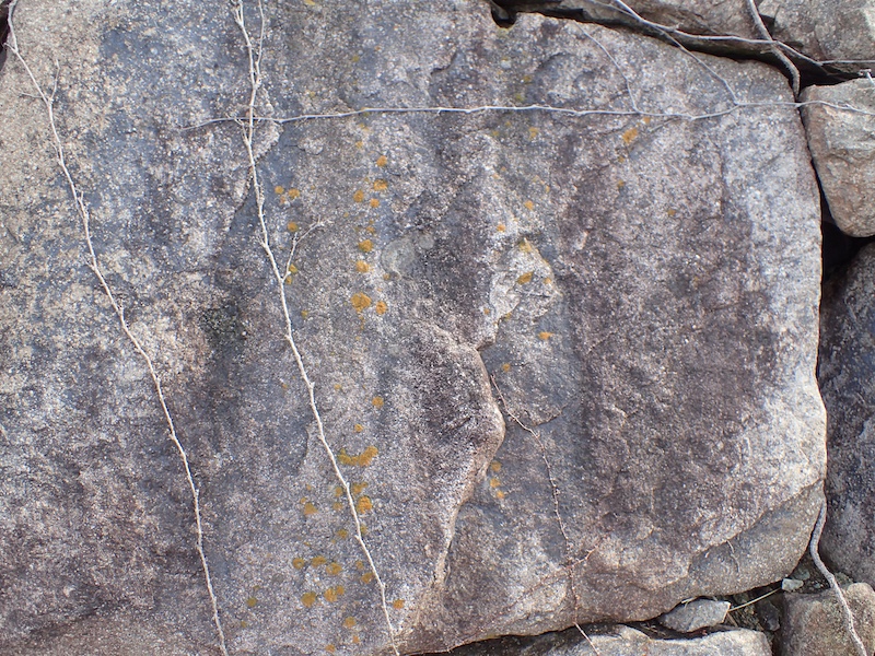 無機質なものの上に居るのは、地衣類自体、共生している藻類が光合成で栄養を作ってくれるので、付着しているものから栄養を摂る必要がないためです。