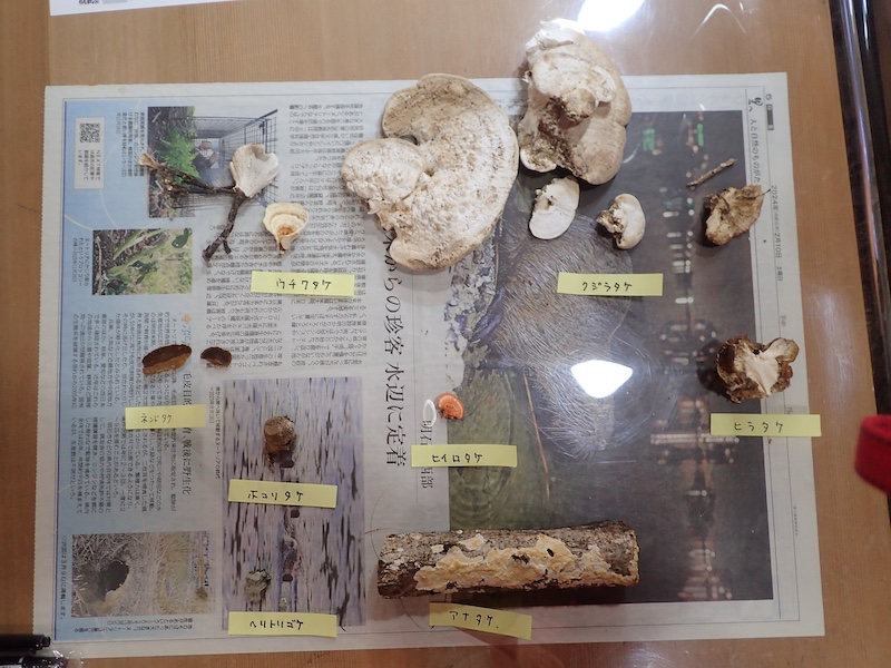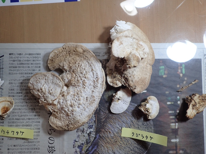 その他のキノコは硬質菌主体ですが、クジラタケは複数並べてみると、生え始めは丸く分厚いのが次第に薄く平たいものに変わって見えることとか、ヘリに近い部分には管孔が少ないとか、表(上)面には小さいイボが共通的な特徴だとかがわかりました。