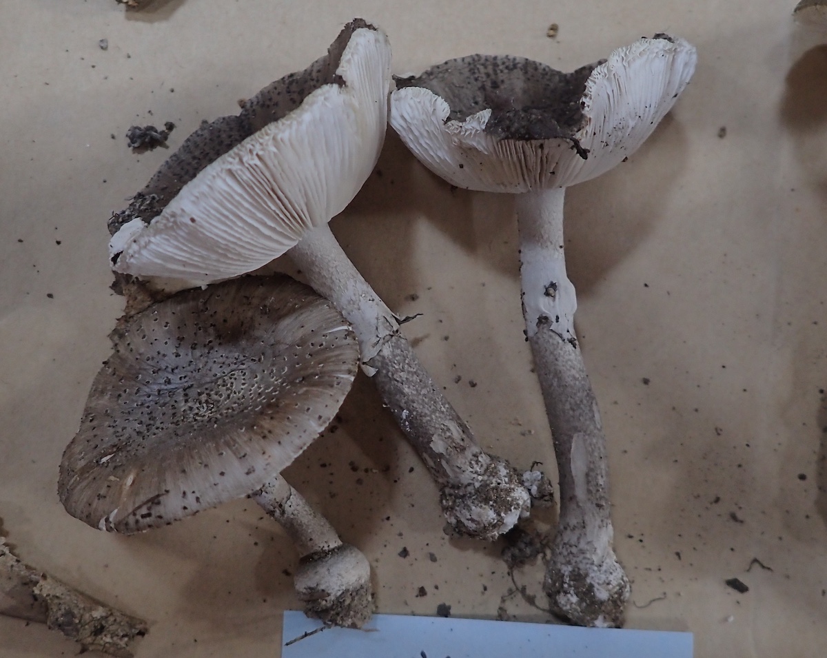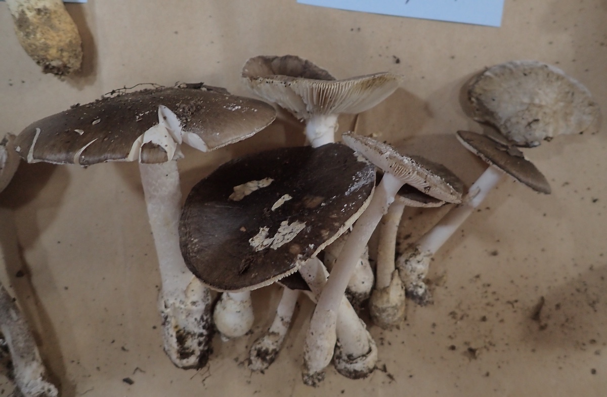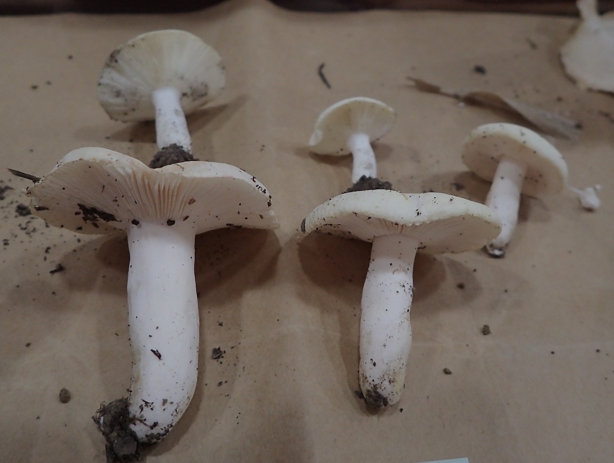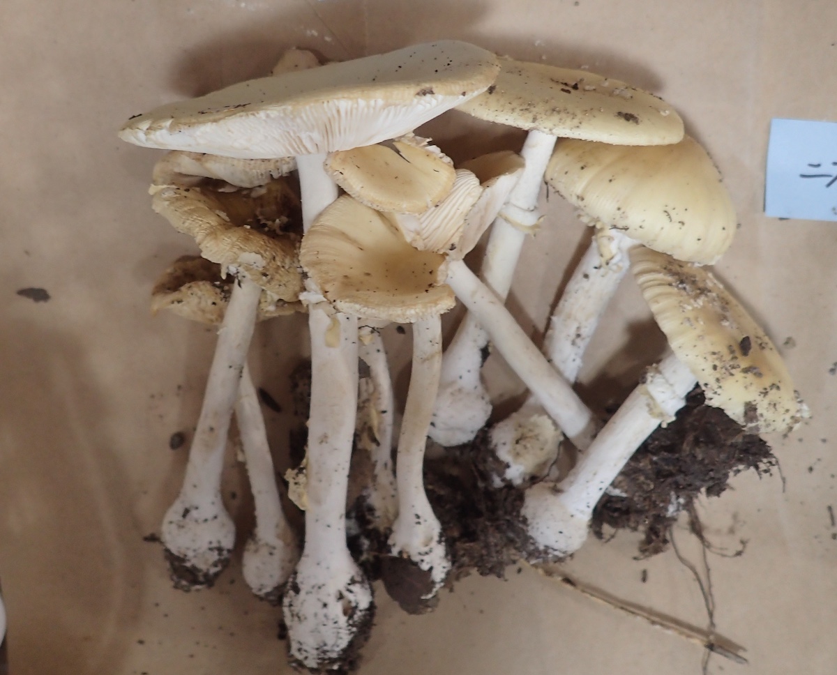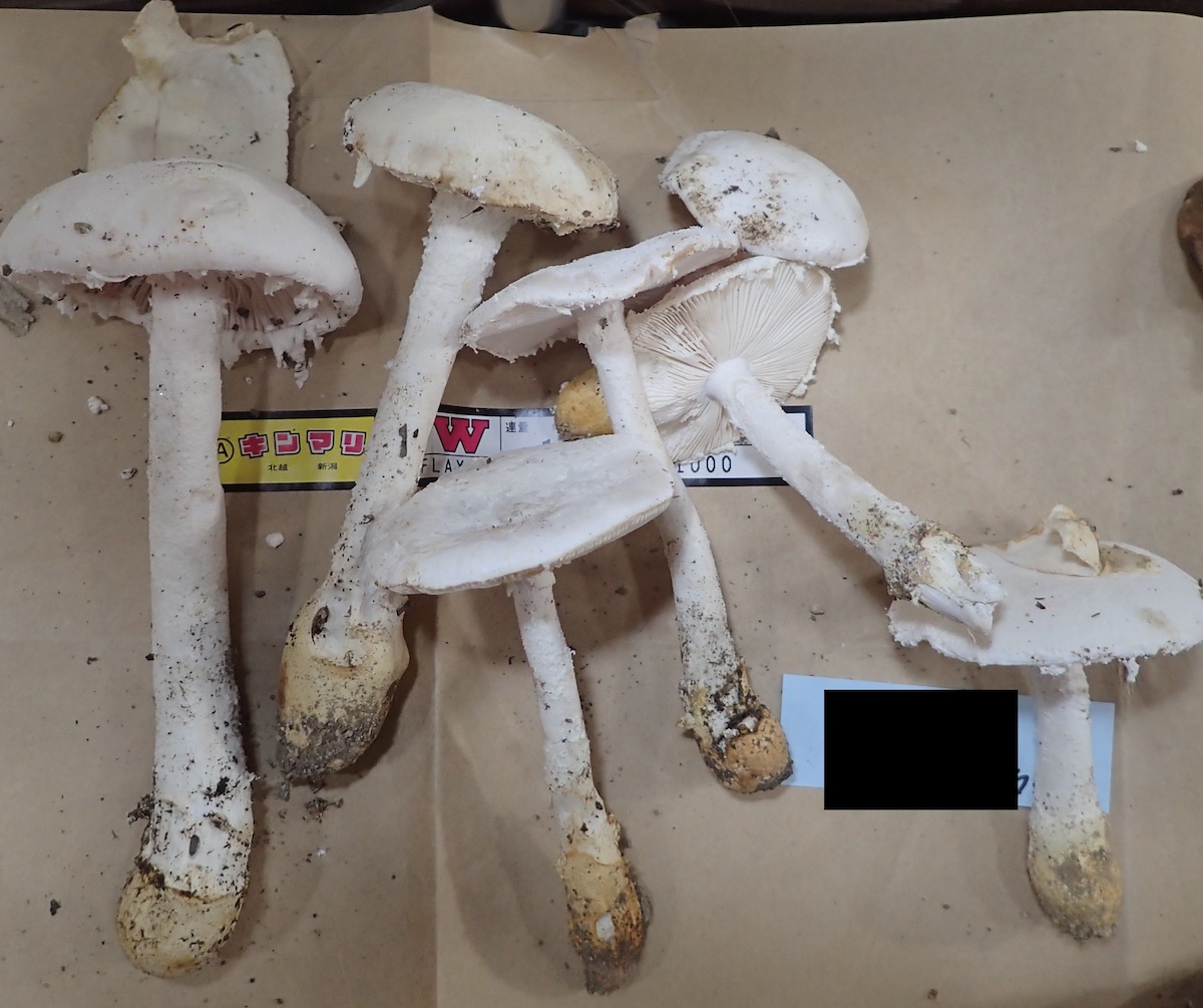 左から、フクロツルタケ、コビチャニガイグチ、ニオイドクツルタケとドクツルタケ、シロオニタケ