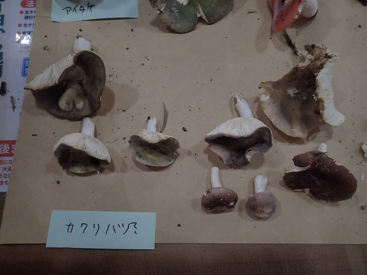 左から、ベニタケ属の一種、ドクベニダマシ、同左、キクバナイグチ
