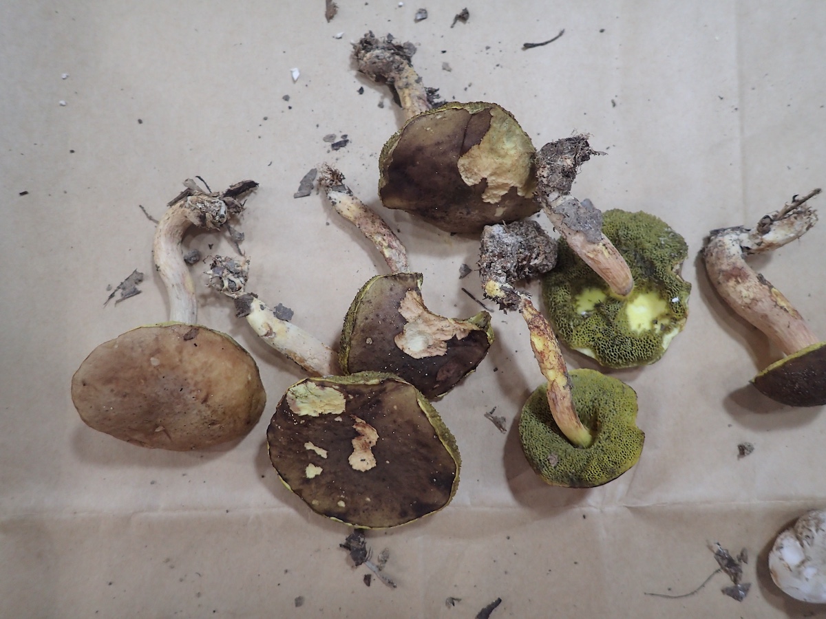 左から、ノウタケ、ビロードクリイロイグチ、同左、キクバナイグチ3種