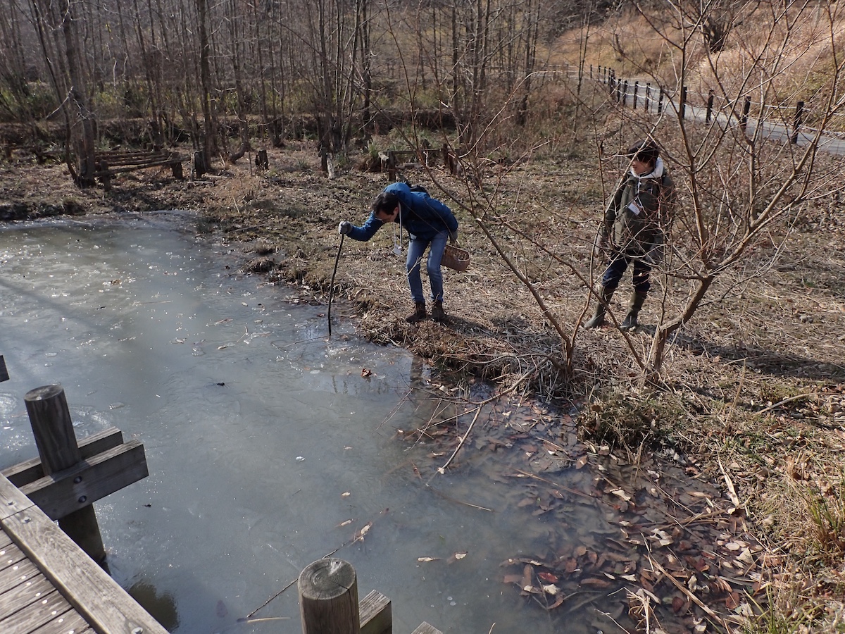池の氷が結構厚い!!