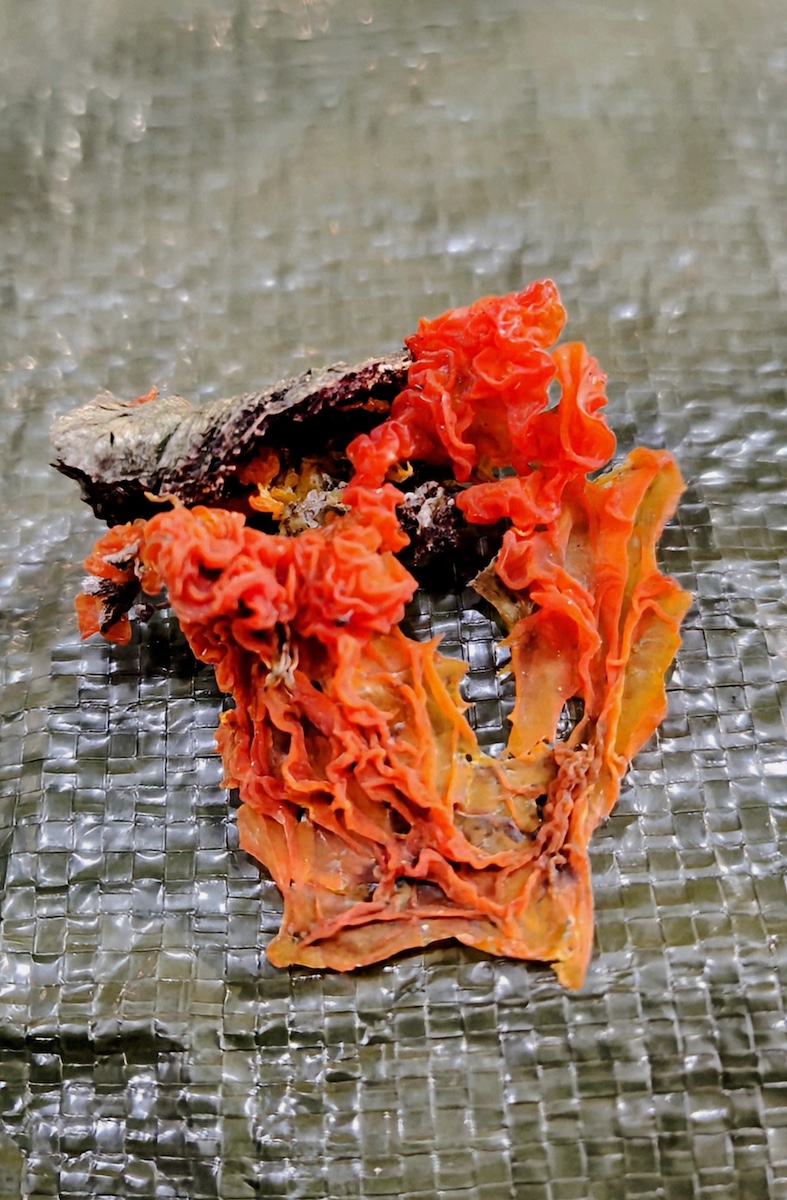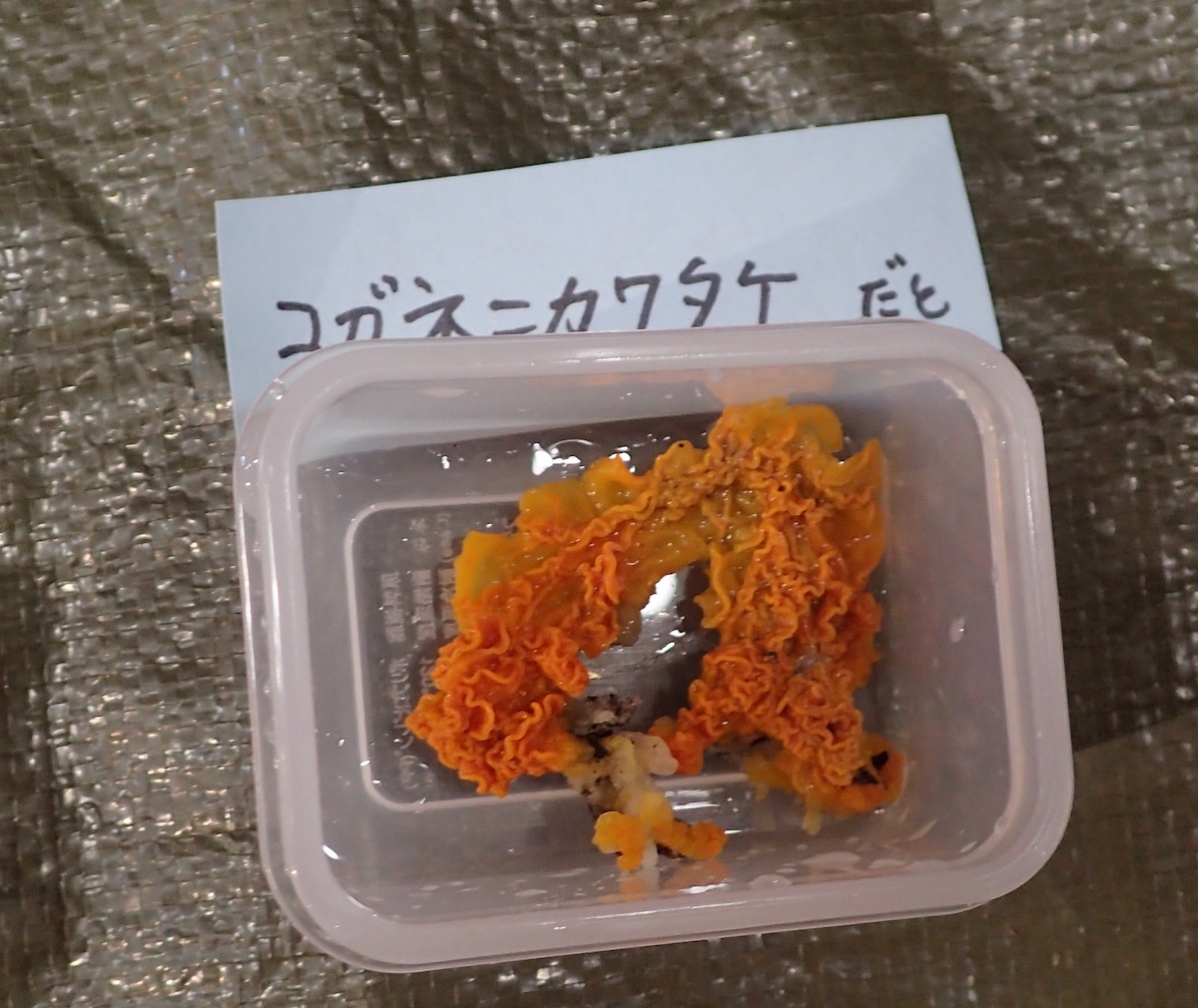 コガネニカワタケなど形が大きく変わるものも多く、色合いも水で戻すと図鑑掲載写真に似てくることが分かりました。