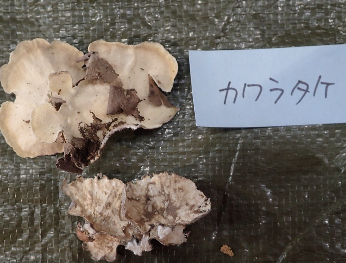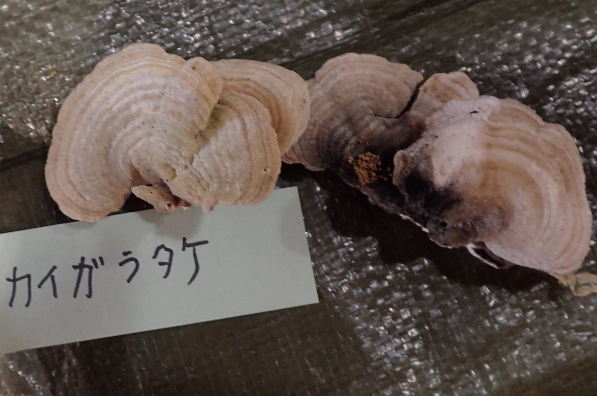 左から、コガネニカワタケ、ウチワタケ、クジラタケ、カイガラタケ