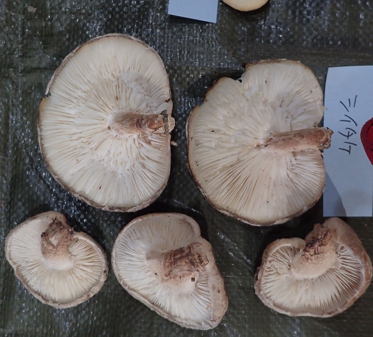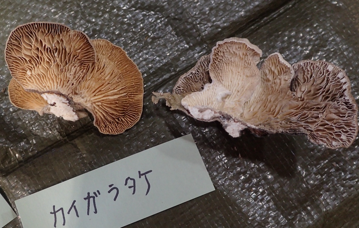 左から、シイタケ、同定の様子